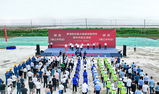 集團領(lǐng)導參加黃海新區(qū)重大基礎(chǔ)設(shè)施項目集中開工及竣工儀式
