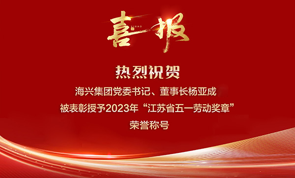 喜報!熱烈祝賀海興集團黨委書記、董事長楊亞成被表彰授予2023年“江蘇省五一勞動獎章”榮譽稱號